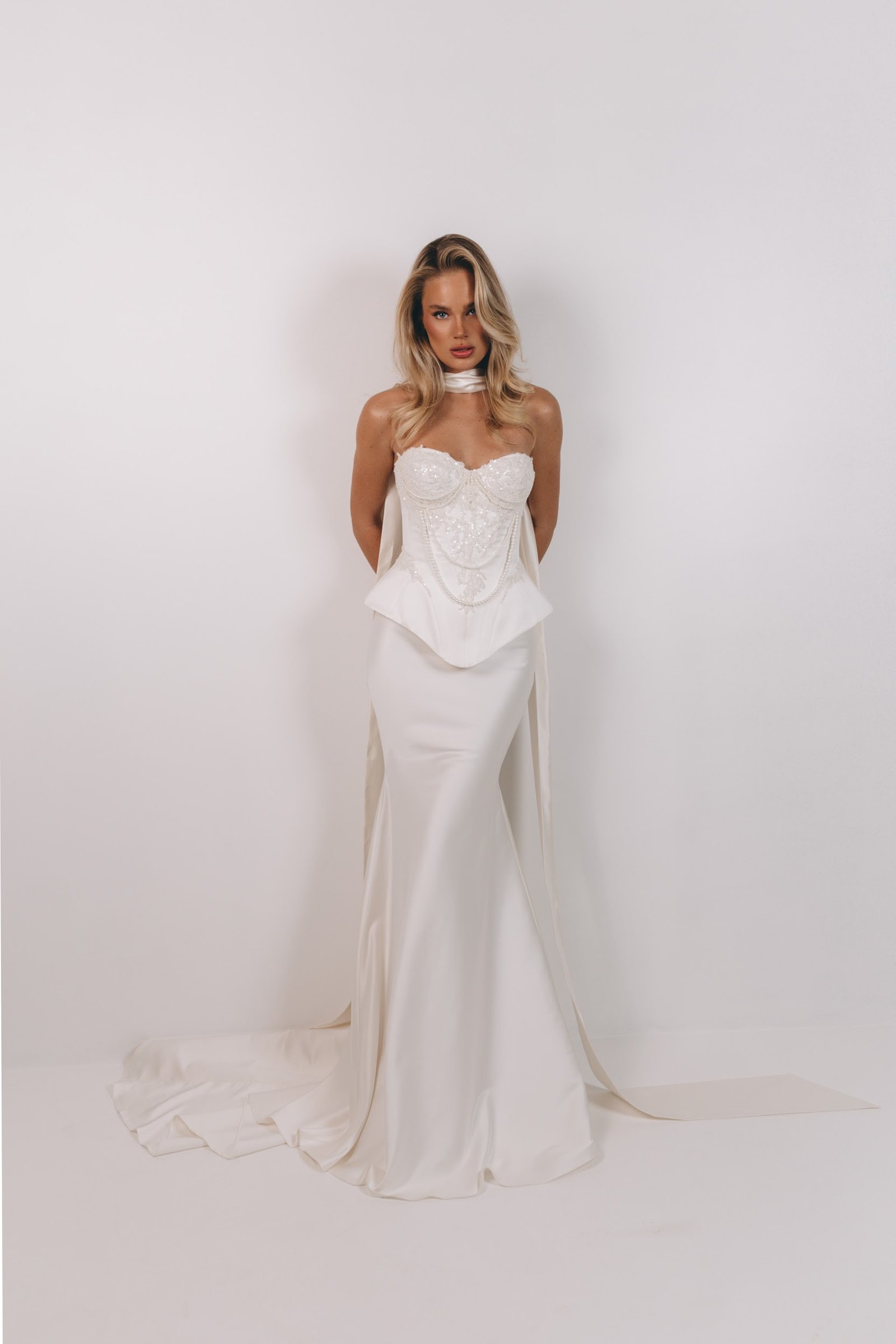Our bridal boutique in NZ highlights the meticulous craftsmanship behind every gown, from structured corsets to bold silhouettes, always designed with an impeccable fit. As a bridal store in Auckland brides trust, we showcase pieces that feel fresh, artistic, and deeply personal.